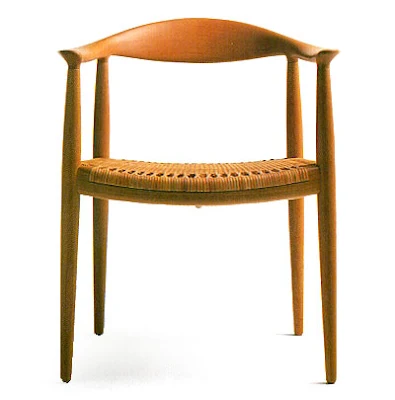 Even his earliest objects, like an armchair with sloping armrests like relaxed wrists (a 1937 design for an exhibit at the Museum of Decorative Arts), exhibited Wegner's approach of "stripping the old chairs of their outer style and letting them appear in their pure construction."